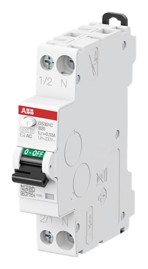 ABB - Disjoncteur Différentiel DS301C-1P+N (droite) 1mod.-20A Cbe B-30mA Type AC-6kA - L236085
