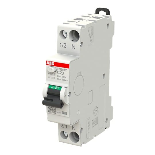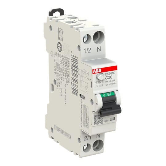 ABB - Disjoncteur Différentiel DS301C-1P+N (droite) 1mod.-20A Cbe C-30mA Type F-6kA - L272385