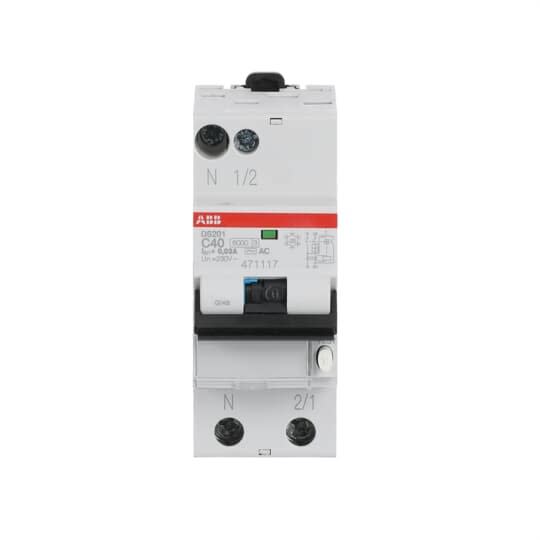 ABB - DS201 - Disjoncteur Différentiel-1P+N ?-40A-Cbe C -6000A/10kA-30mA-Type AC - 471117