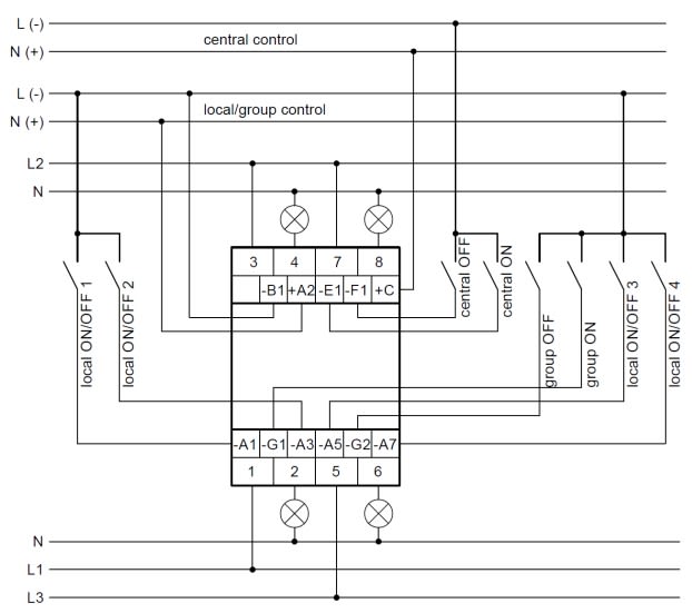 Les télérupteurs électroniques avec une tension de commande universelle de 8 à 240 V AC/DC garantissent un maximum de fiabilité, de durée de vie et un fonctionnement silencieux. La version E260C dispose d'une fonction de commande centrale intégrée (ON/OFF), qui est également réglable sur les versions E260CA.