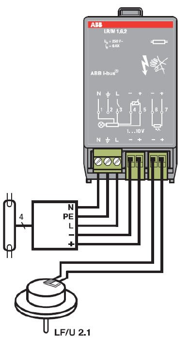 Permet la commutation et la variation d'un groupe de luminaires via une tension de commande 1 ... 10 V. L'appareil peut être utilisé pour une commande d'éclairage constante en association avec un capteur de lumière LF / U 2.1.