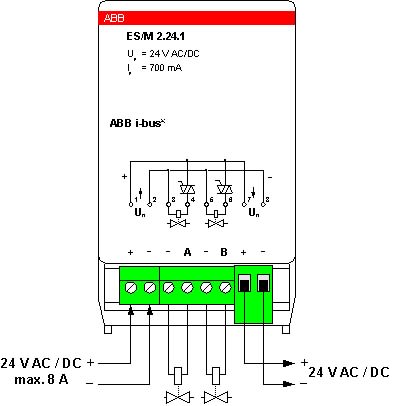 Module à brancher sur le dispositif de base du Room Controller. Il dispose de deux sorties anti-surcharge, silencieuses et résistantes à l'usure pour la commande de commandes de vannes électrothermiques avec une tension de 12/24 V AC / DC, max. 700 mA de courant continu.