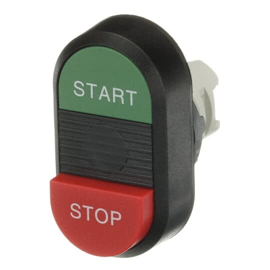Bouton-poussoir modulaire double - momentané - affleurant / étendu - actionneur vert / rouge, indicateur noir - non lumineux - pas de bloc de contact - bouton inférieur: STOP - bouton supérieur: START