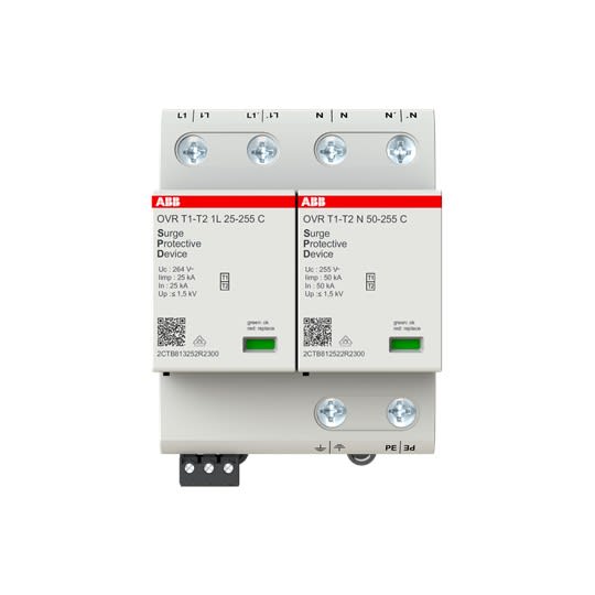 ABB - Parafoudre débrochable OVR T1-T2 Iimp. 25KA- 1P+N- 230V - Uc 255V - TNS/TT-av.TS - B611461