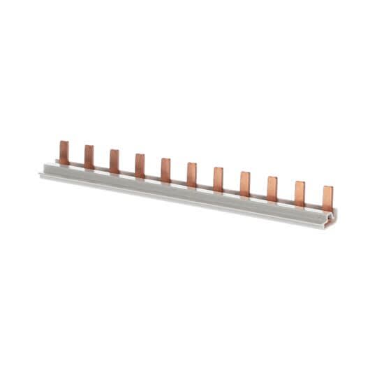 PS1/11/30 - Peigne horizontal 1P (1Phase), sécable, avec embouts, pour les séries disj. S200 de 1 pôle - Courant nominal 120A / 690V Max., Icw 25kA 30mm², 11 x 1 Pôle, 11 modules, Couleur gris clair (RAL 7035).