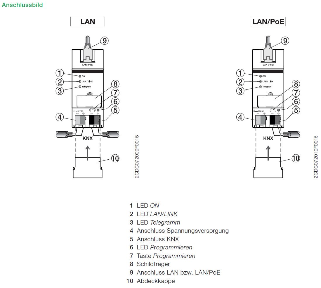 Connecte le bus KNX au réseau Ethernet. L'appareil utilise le protocole KNXnet / IP pour la communication (routage et tunneling). Il peut être utilisé comme coupleur de ligne et de zone rapide. La table de filtrage complète pour les groupes principaux 0-31 est prise en charge. Les appareils KNX peuvent être programmés via le LAN en utilisant ETS. Pour cela et pour d'autres clients, 5 serveurs de tunneling sont disponibles. L'adresse IP peut être fixe ou peut être reçue d'un serveur DHCP. Alimentation via 12… 30 V DC ou PoE (IEEE 802.3af classe 1). La communication standard KNX (Multicast) peut être désactivée. Dans ce cas, jusqu'à 10 IPR / S 3.1.1 peuvent communiquer en utilisant la communication unicast