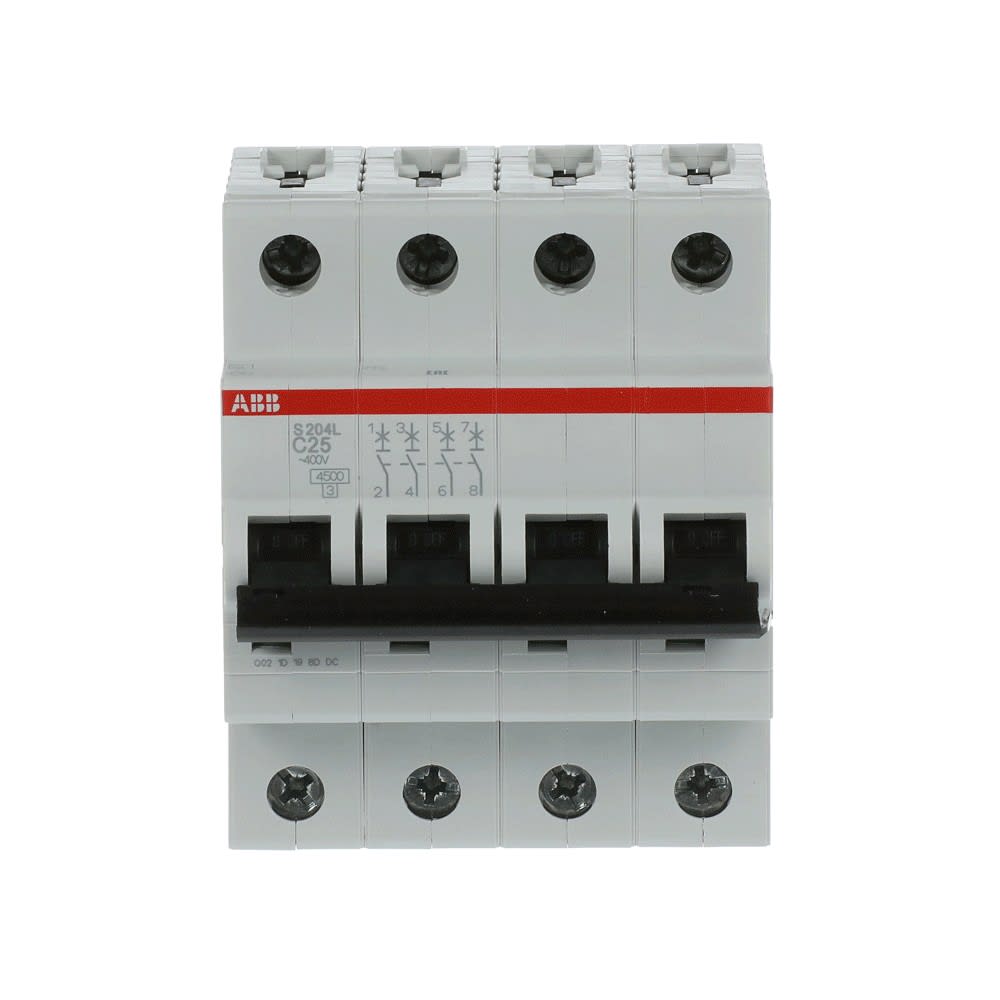 Disjoncteur Modulaire Rési./Tertiaire/Indus. - Série S200L - 4P - 230V/400VAC -25A - Courbe C - Pouvoir de coupure Icn 4500A / Icu 6kA -Raccordement vis/vis - Peignable- Largeur 4 modules-IEC/EN 60898-1 - IEC/EN 60947-2