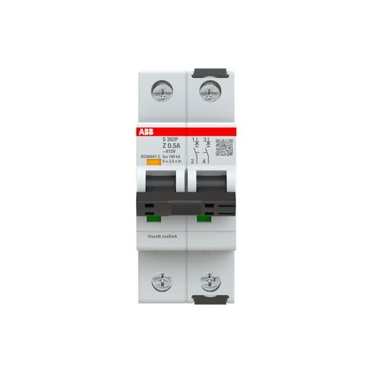 ABB - S300P-Disjoncteur 2P-0.5A-Courbe Z-Pdc 25000A-230/400VAC 100kA-125VDC 25kA-2 mod - A907887