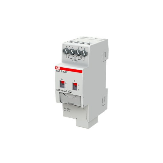 L'actionneur de commutation utilise des contacts libres de potentiel pour commuter 2 charges électriques indépendantes via l'ABB i-bus® KNX. L'appareil dispose d'une commande manuelle et d'un affichage de l'état de commutation des sorties. L'appareil 10 A est particulièrement adapté aux charges avec des courants de choc élevés, par ex. éclairage fluorescent selon. EN 60669. L'appareil est alimenté par KNX et ne nécessite aucune alimentation supplémentaire.
