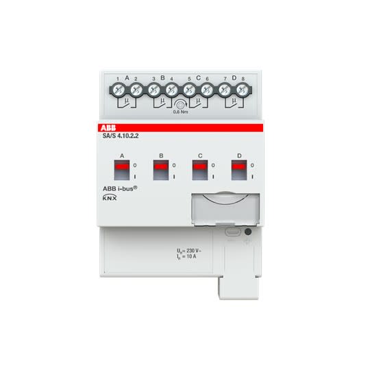 L'actionneur de commutation utilise des contacts libres de potentiel pour commuter 4 charges électriques indépendantes via l'ABB i-bus® KNX. L'appareil dispose d'une commande manuelle et d'un affichage de l'état de commutation des sorties. L'appareil 10 A est particulièrement adapté aux charges avec des courants de choc élevés, par ex. éclairage fluorescent selon. EN 60669. L'appareil est alimenté par KNX et ne nécessite aucune alimentation supplémentaire.