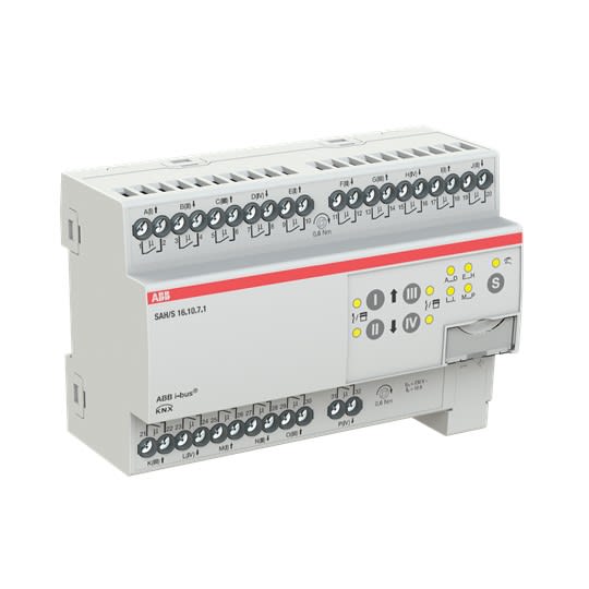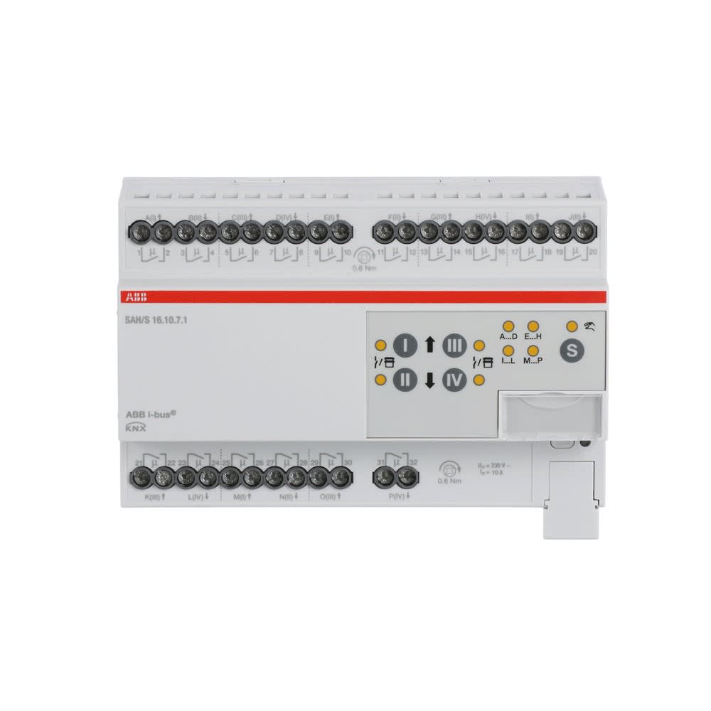 L'actionneur de commutation combiné compact 10 A dispose de 16 relais de commutation indépendants. Les sorties peuvent être utilisées individuellement via ABB i-bus® KNX pour la commutation de charges électriques ou par paires pour la commande de volets roulants ou d'entraînements de stores 230 V AC (pas de verrouillage électromécanique). L'appareil dispose d'une opération manuelle, qui peut également être désactivée. Grâce à la commande manuelle, les sorties peuvent être commandées manuellement et l'état de commutation ou de conduite est affiché. L'appareil est alimenté par KNX et ne nécessite aucune alimentation supplémentaire.