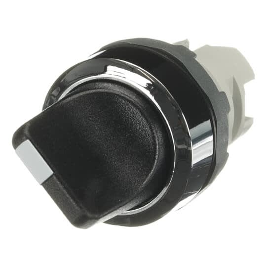 Sélecteur modulaire - Maintenu 2 positions - Poignée courte - Noir - Non éclairé - Métal chromé - Sans bloc de contact