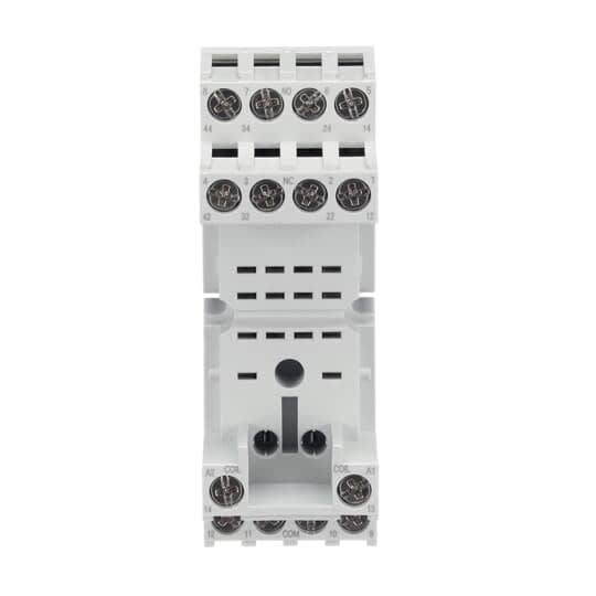 Le socle standard à vis pour relais débrochable Cr-M2/4rt Il sert de prise standard pour les relais miniatures 2c/o ou 4c/o avec des bornes à vis Tension nominale de 250V courant nominal AC-12 7A à 230V Tension assignée d'isolement de 3 V