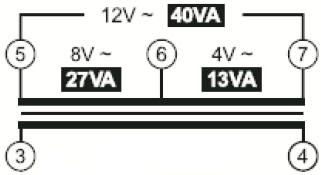 ABB - TM 40/12 - Transfo. Modulaire 230VAC/4-8-12VAC, 40VA, Utilisation Discontinue - T228775