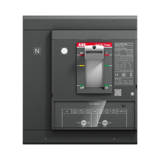 Disjoncteurs à boîtier moulé TMAX XT5S 630 fixe trois pôles avec bornes avant et décharge thermomagnétique TMG R 630 I3=1575...3150 A neutre totalement nominal