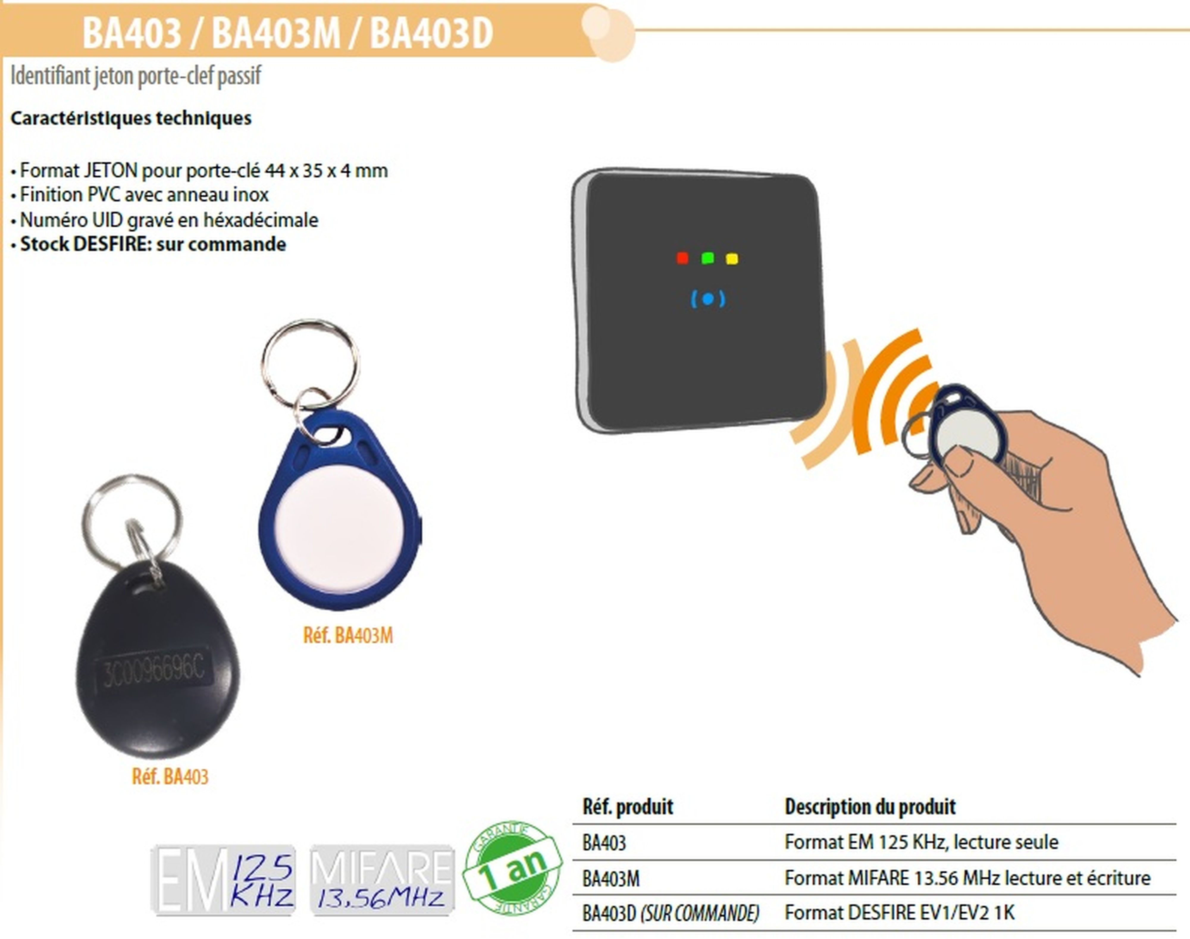 Acie Automatisme - Badge passif de proximité em format niso jeton porte clé, pour lecteur 125khz - BA403