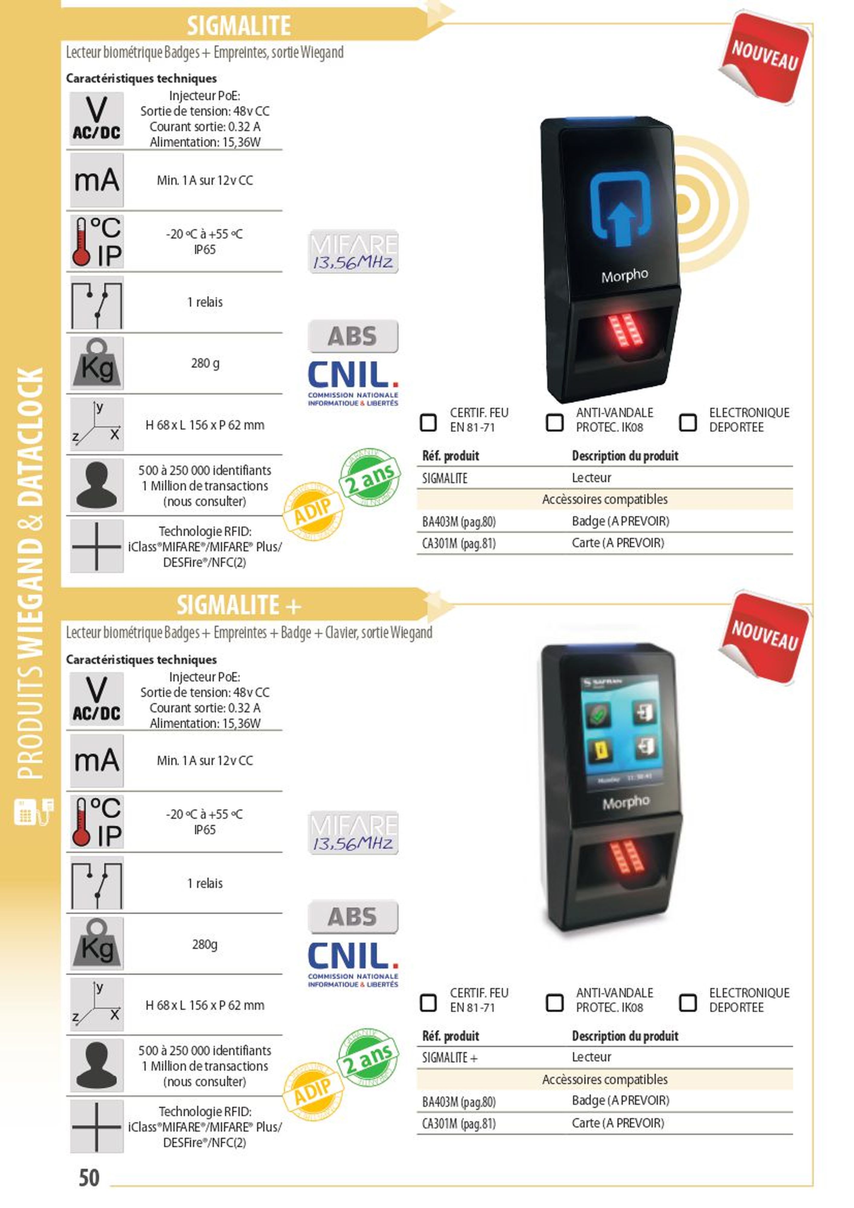 Acie Automatisme - Becteur d'empreinte ou clavier/empreinte sortie wiegand 26 - SIGMALITE+
