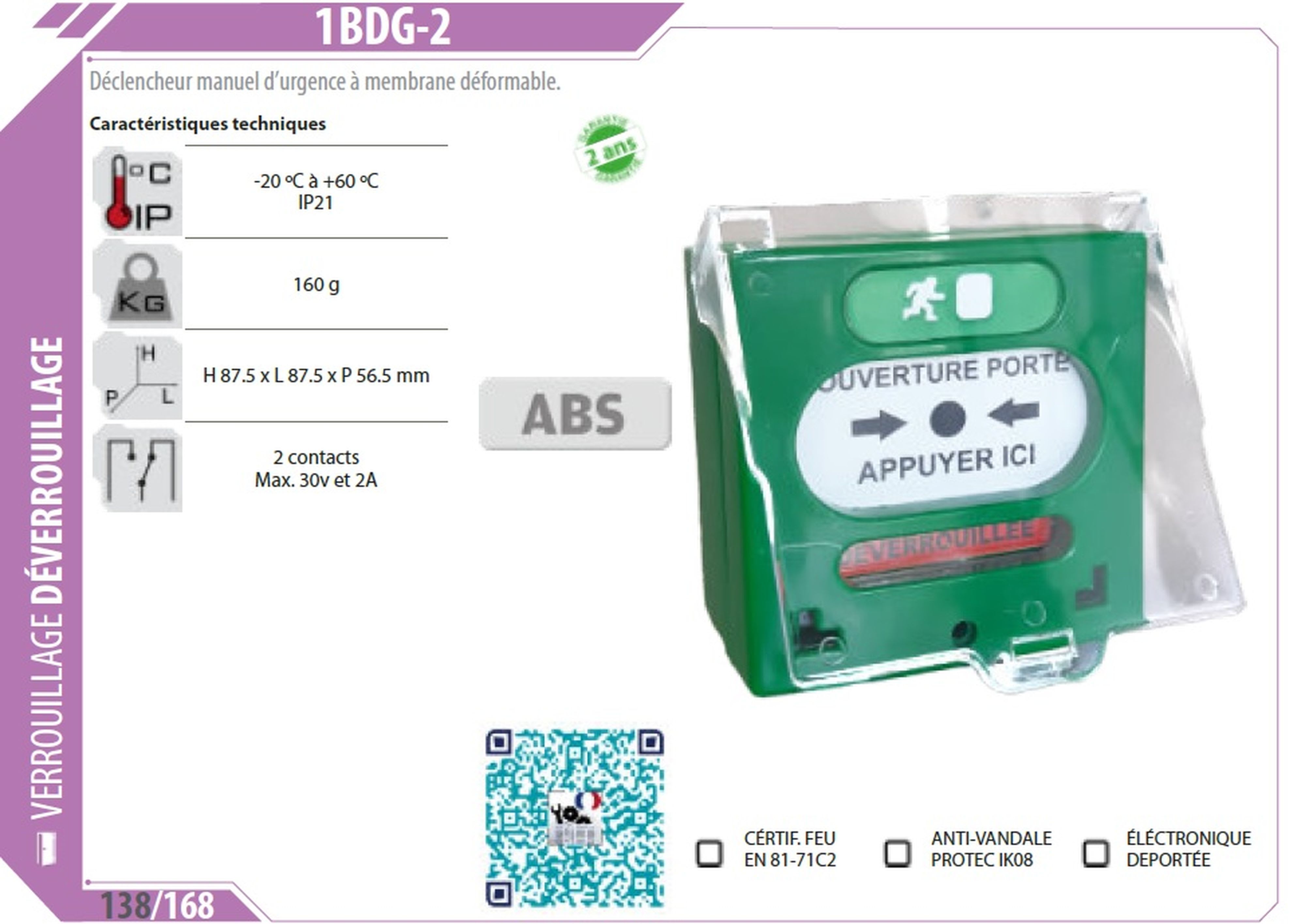 Déclencheur manuel d'urgence 2 contacts 30V et 2A