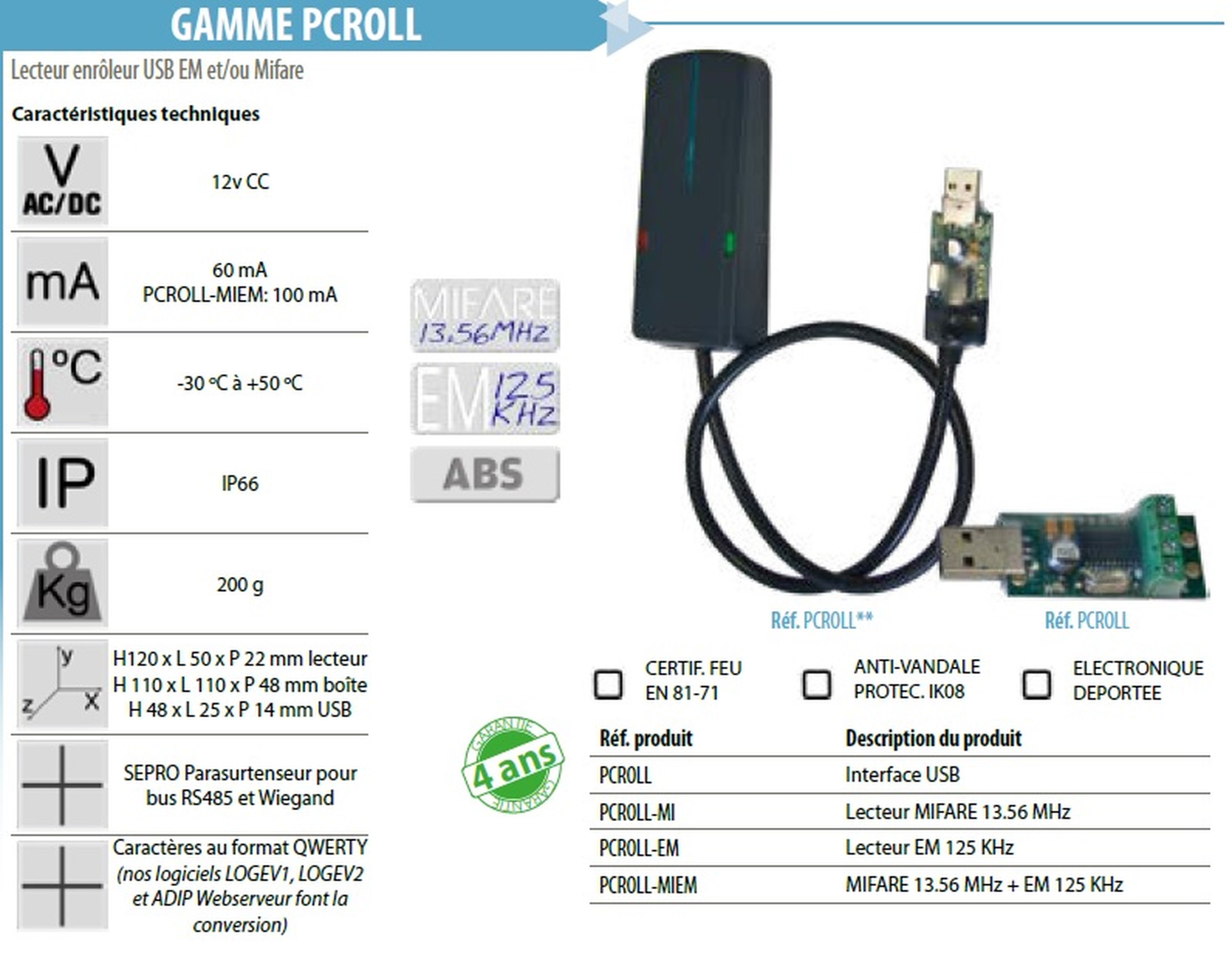 Acie Automatisme - Interface enrôleur usb avec lecteur wiegand dataclock. lec-miem. - PCROLL-MIEM