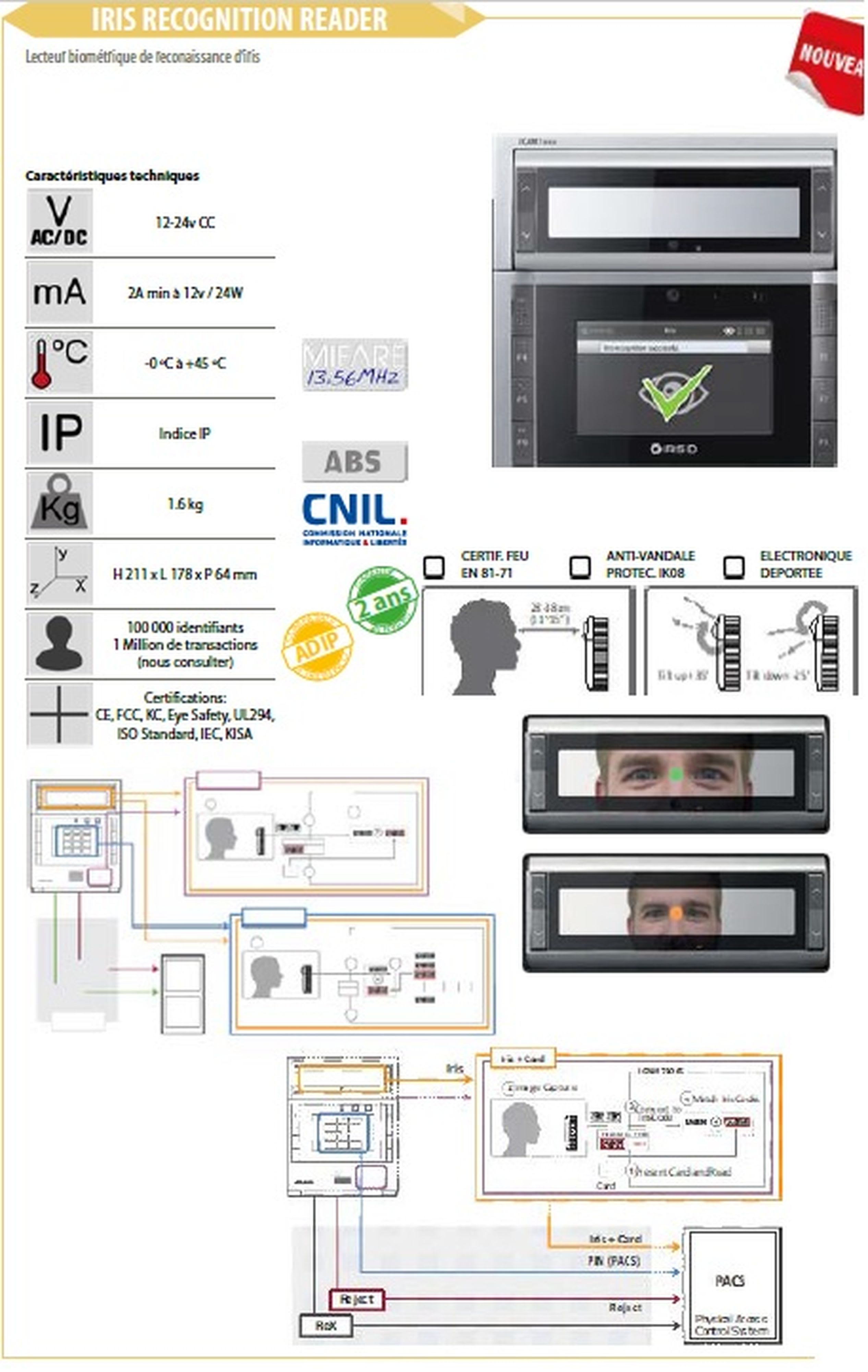la biométrie extérieure avec reconnaissance de l'iris en WDT/CK compatible CNIL