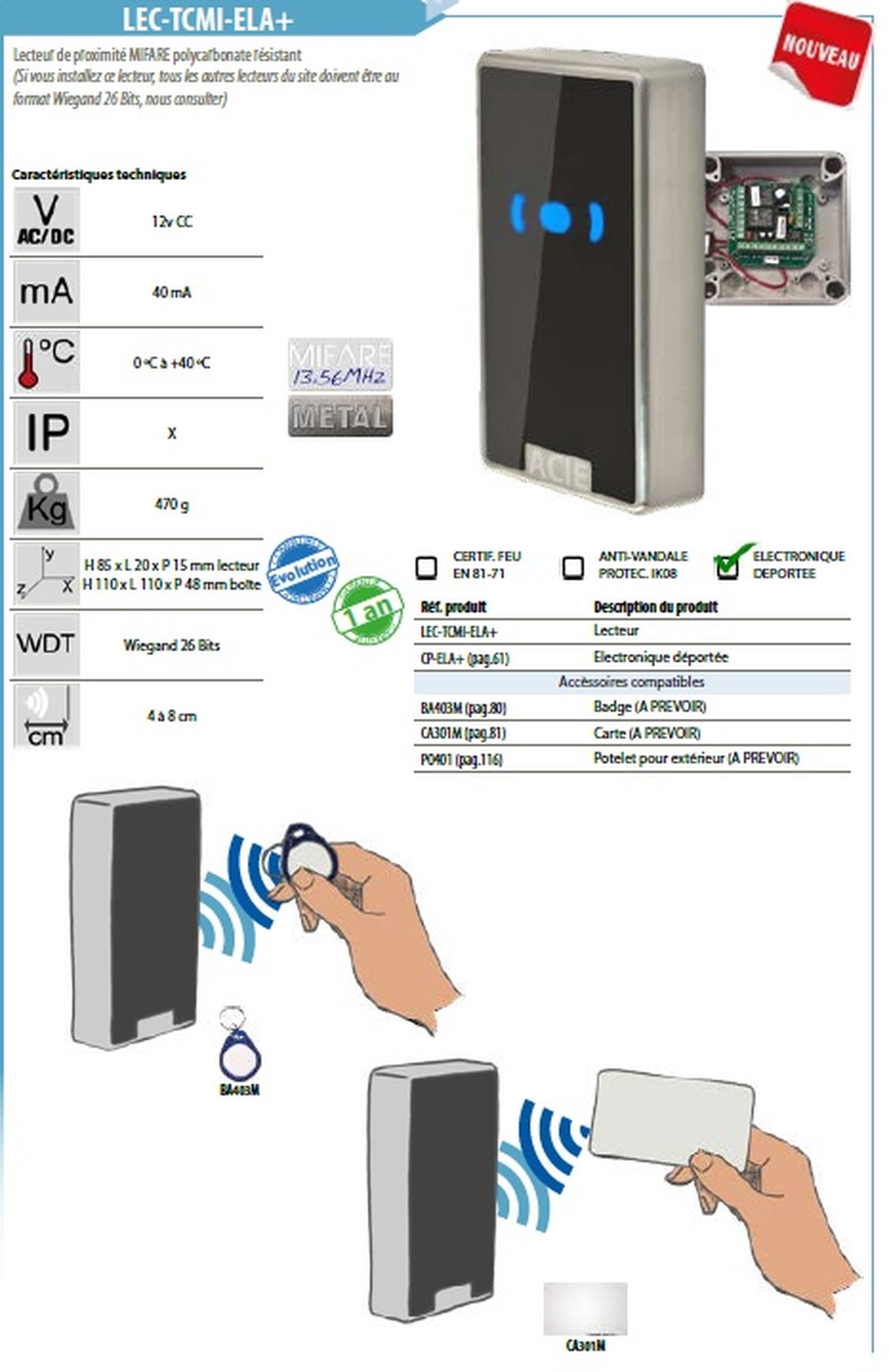 Acie Automatisme - Lecteur sailli extérieur mifare pour centrale évolution - LEC-TCMI-ELA+