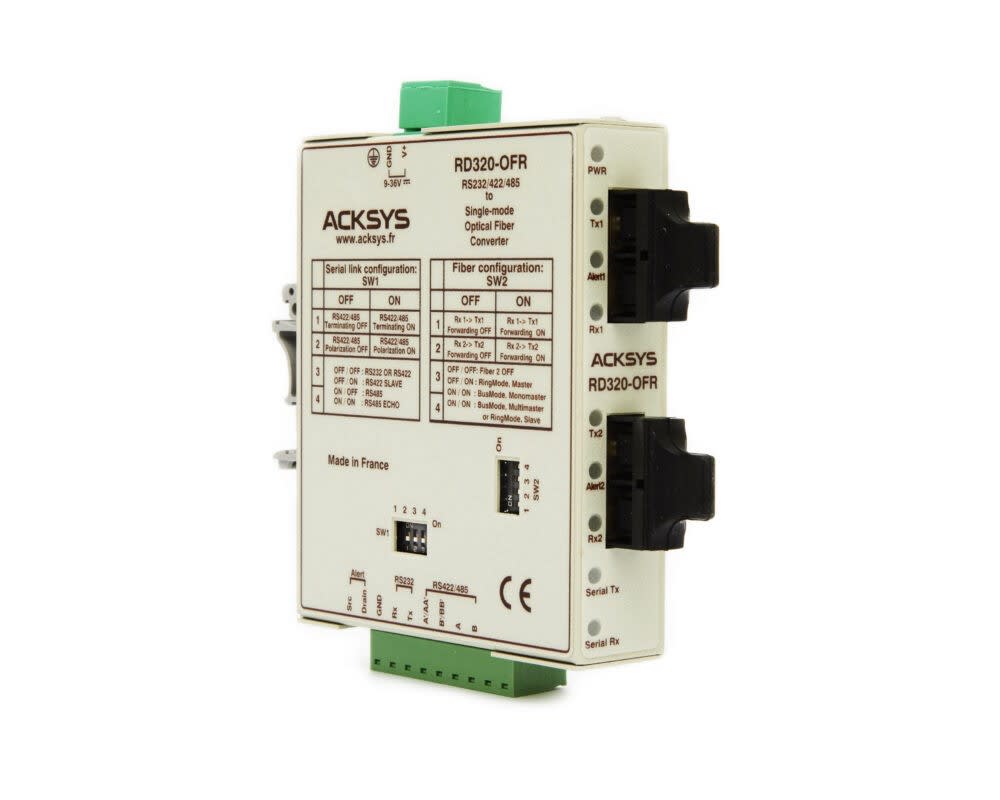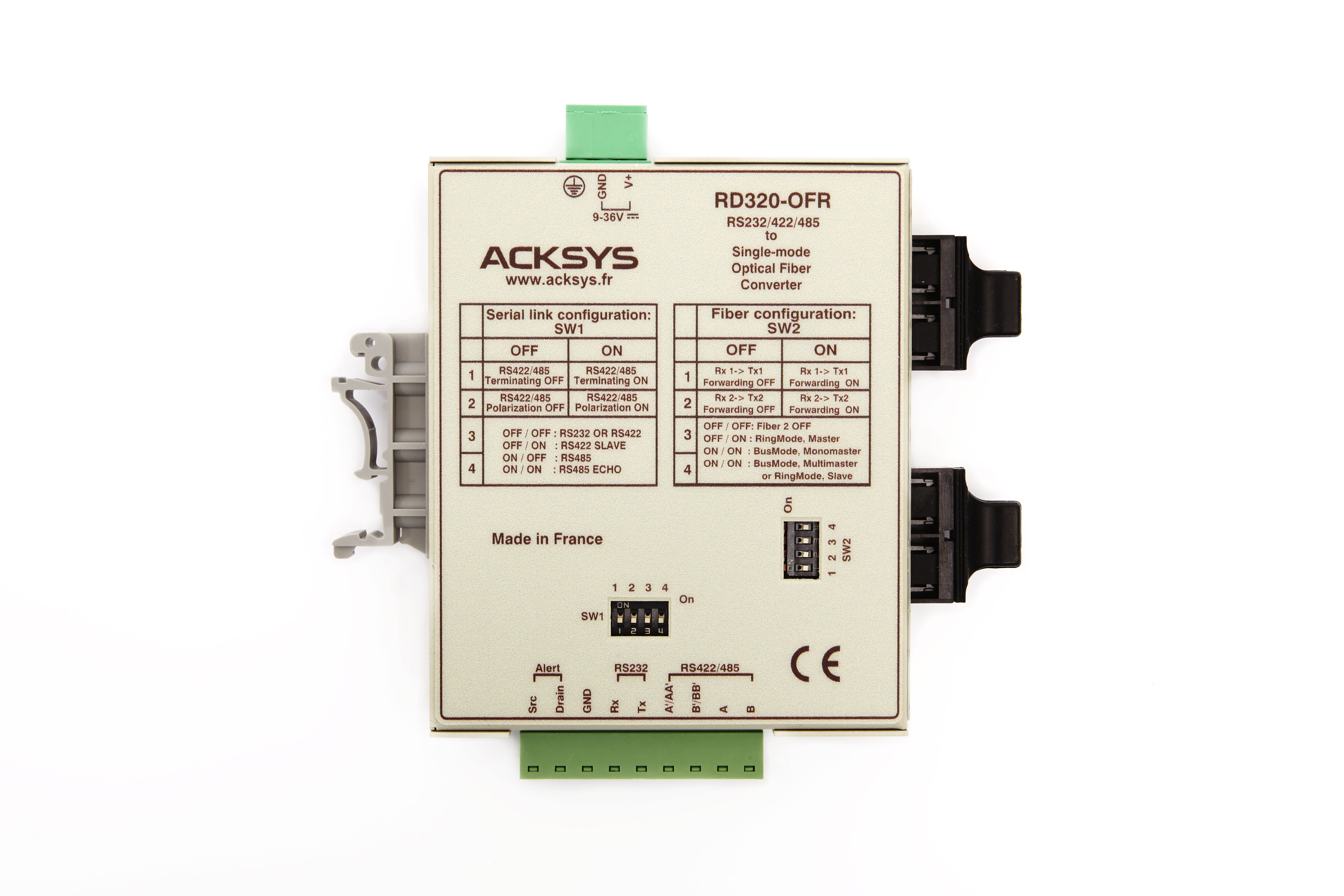 Acksys - Convertisseur RS232/422/485 <> FO monomode, 4 connecteurs SC, format rail Din - RD320-OFR