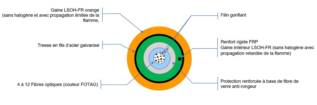 Acome - Câble CR1-FO/C1 6xOS2 int/ext armé acier renforcé fibre de verre Orange - B1374A