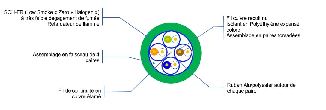 ACOME offre une gamme très large de câbles LAN cuivre, couvrant toutes les catégories, de la 5e à la 7a, du F/UTP aux paires blindées F/FTP, U/FTP et S/FTP. Cette variété permet de choisir le câble le plus adapté à chaque environnement spécifique.