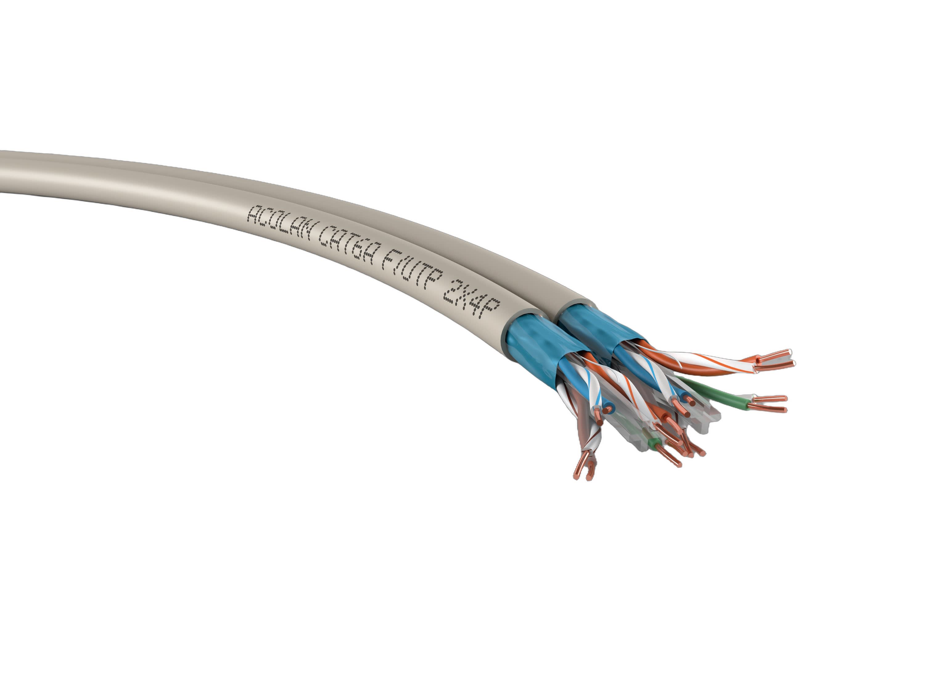 Gamme ACOLAN - Câble Catégorie 6A / EA - Structure F/UTP - 2 x 4paires - Jauge AWG24 - Qualifié à une fréquence de 550 Mhz - Conditionné en touret de 1000m - Gaine LSOH-FR - couleur Ivoire Tenue au feu : niveau RPC Dca