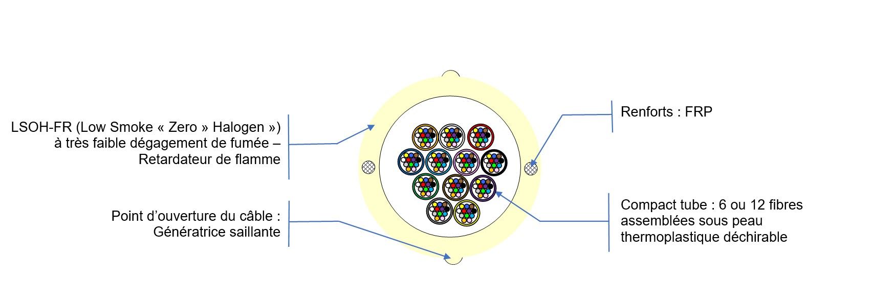 Acome - Câble Hemera PACe 72 fibres optique OS2 Modulo 6 - Ivoire -Euroclasse B2ca - B1287A