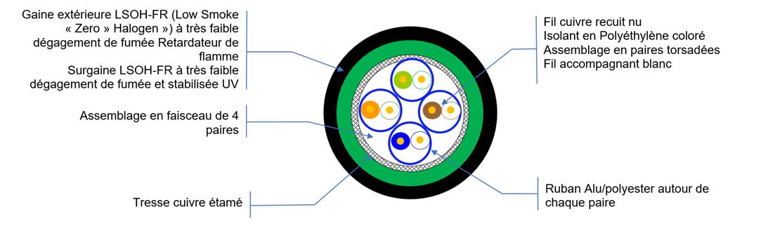 ACOME offre une gamme très large de câbles LAN cuivre, couvrant toutes les catégories, de la 5e à la 7a, du F/UTP aux paires blindées F/FTP, U/FTP et S/FTP. Cette variété permet de choisir le câble le plus adapté à chaque environnement spécifique.