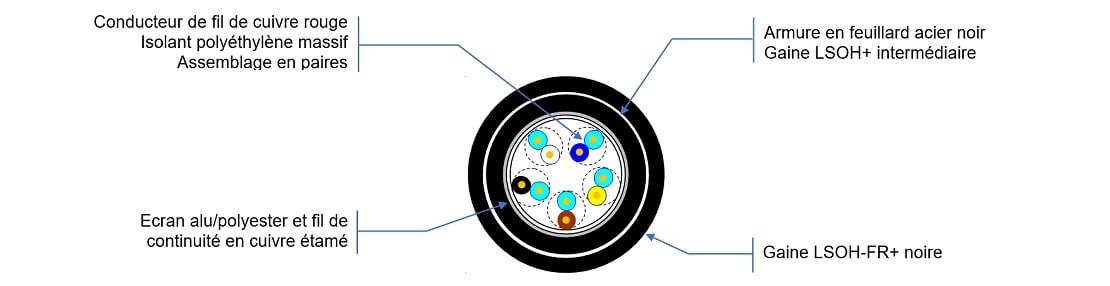 Acome - Câble SYT2 FIREPROTECT+ 8 - 5 paires - arme LSOH-FR+ Gaine noire B2ca - R7578A