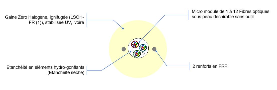 Acome - Câble UND1636 24 fibres G657A2 Modulo 6 Z1208 - H0021A