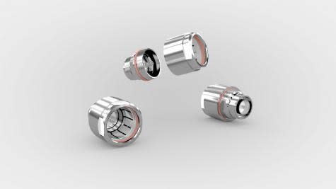 Connecteur 4.3-10 femelle pour câble coaxial 50 Ohms, 7/8 pouce flexible, Faible atténuation, PIM amélioré