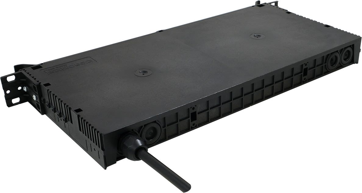 Tiroir optique iLIA v2 12fo équipé de 6 raccords LC Duplex multimode OM3-4 - Hauteur 1U - 4 entrées de câbles - visserie, 2équerres de fixation 19 '' réglables - 1 PG Ø 13,5 mm - système de lovage