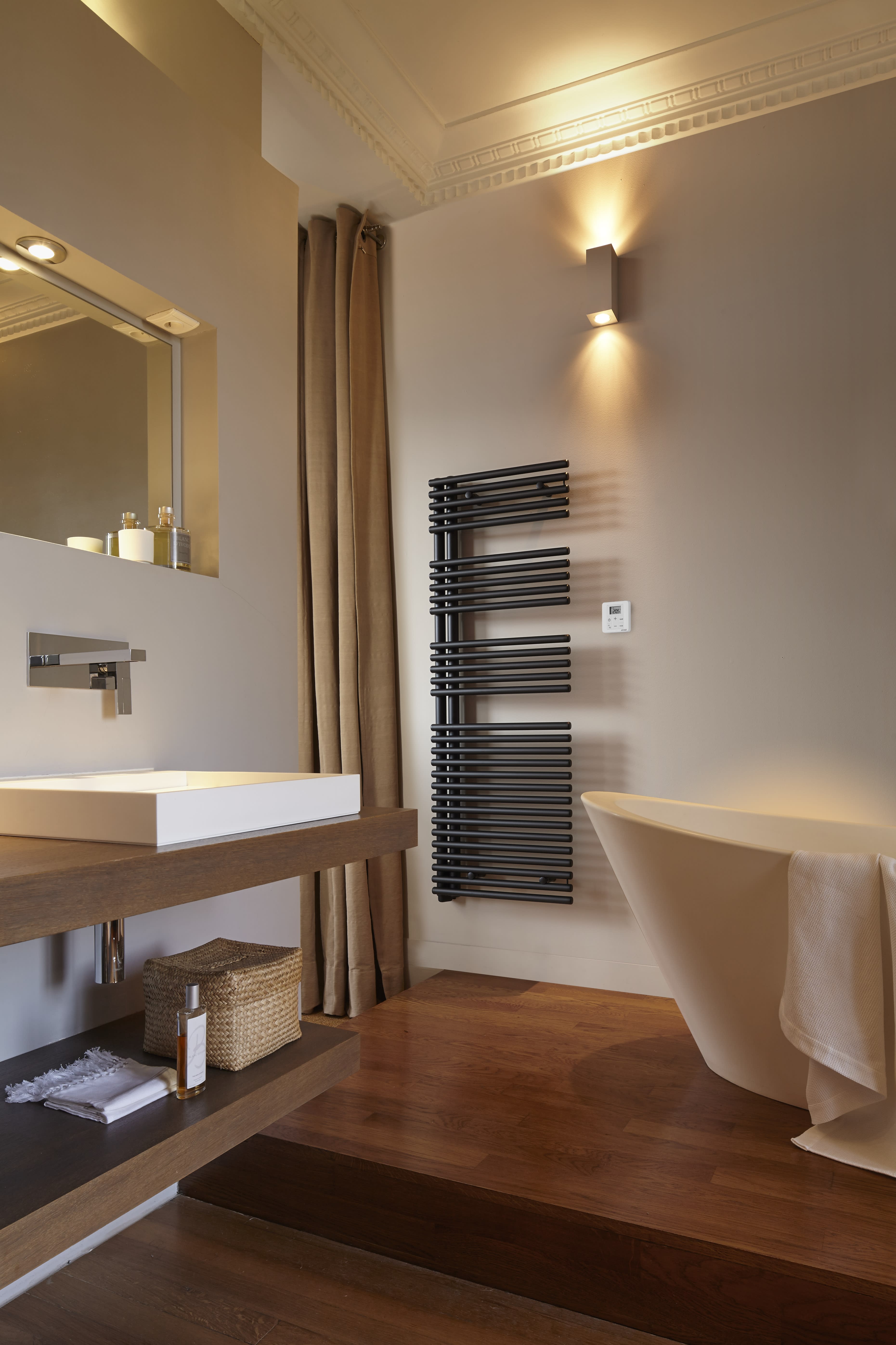 Design asymétrique : facilite la pose des serviettesPersonnalisation : disponible dans les 46 couleurs du nuancier Acova, ou en finitions martelées (en option)Astuce aménagement : existe en faible large (396 mm)Longévité : fabriqué en acier protégé par un traitement anticorrosion et une peinture longue durée pour une résistance accrue.Programmation : Programmation ou gestion à la demande par une télécommandeConfort : chaleur homogène pour la salle de bains et les serviettes.
