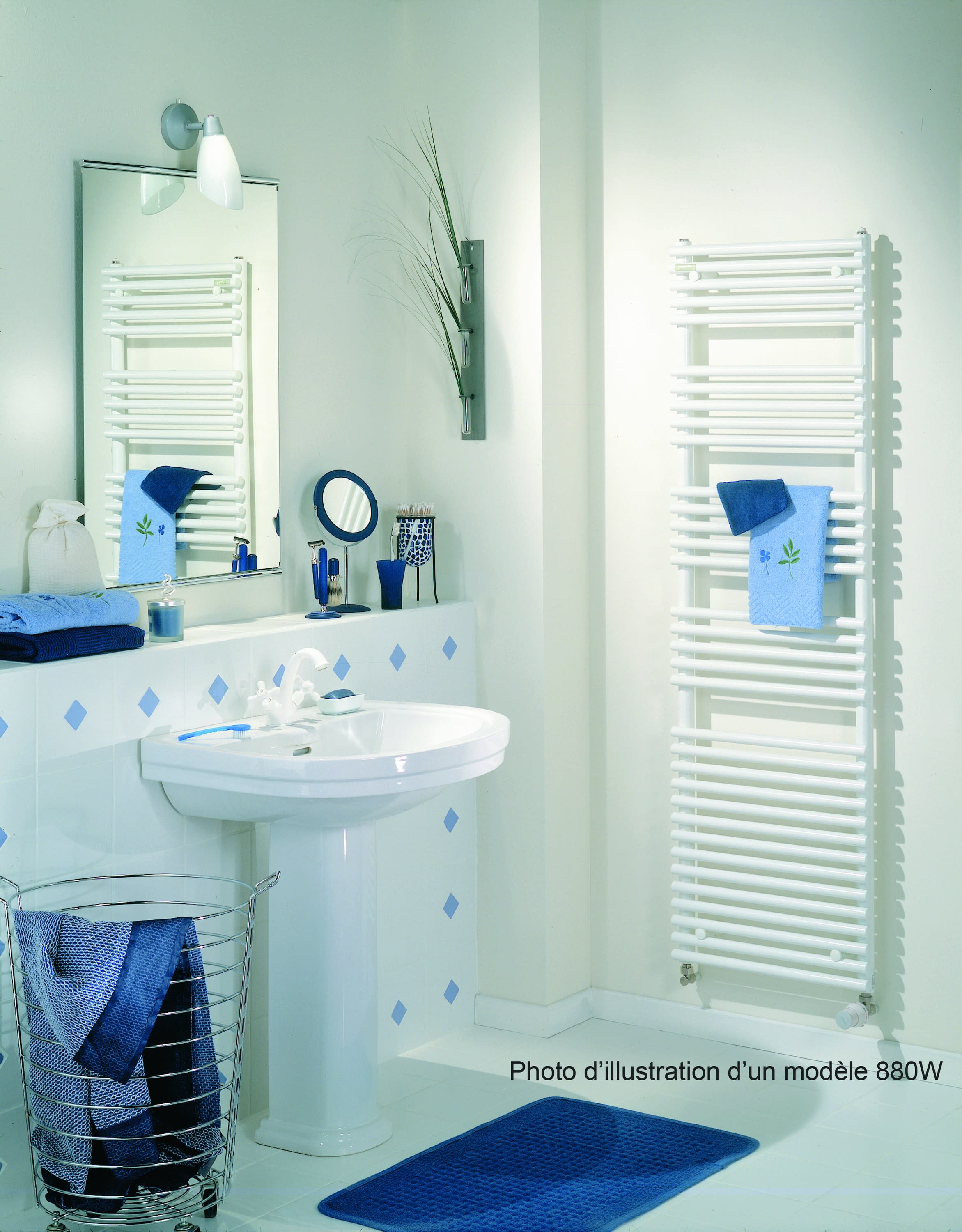 Radiateur sèche-serviettes en acier à tubes ronds, posés sur les collecteurs. Il est adapté à de nombreuses configurations (par exemple, modèles faible largeur ou pose en claustra). Se décline en blanc, en finition chromée, dans les 46 couleurs du nuancier Acova. Disponible en version électrique (avec ou sans soufflant), chauffage central (avec ou sans soufflant) ou mixte.