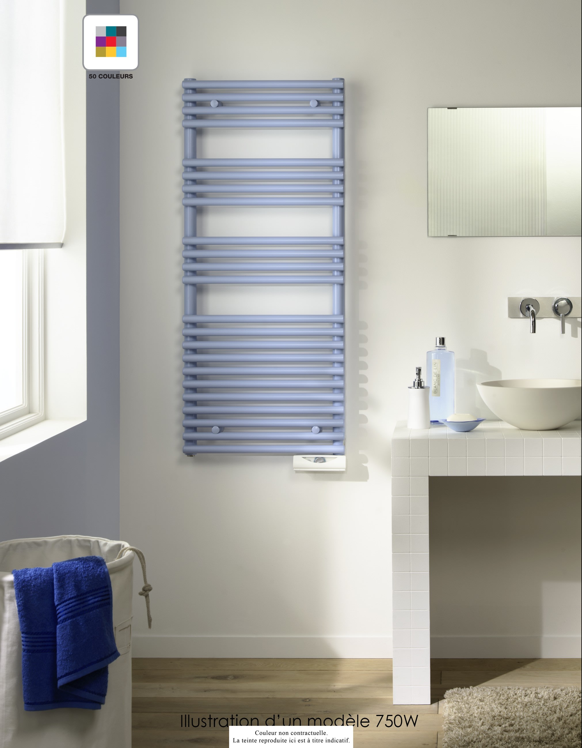 Radiateur sèche-serviettes en acier à tubes ronds, posés sur les collecteurs. Il est adapté à de nombreuses configurations (par exemple, modèles faible largeur ou pose en claustra). Se décline en blanc, en finition chromée, dans les 46 couleurs du nuancier Acova. Disponible en version électrique (avec ou sans soufflant), chauffage central (avec ou sans soufflant) ou mixte.
