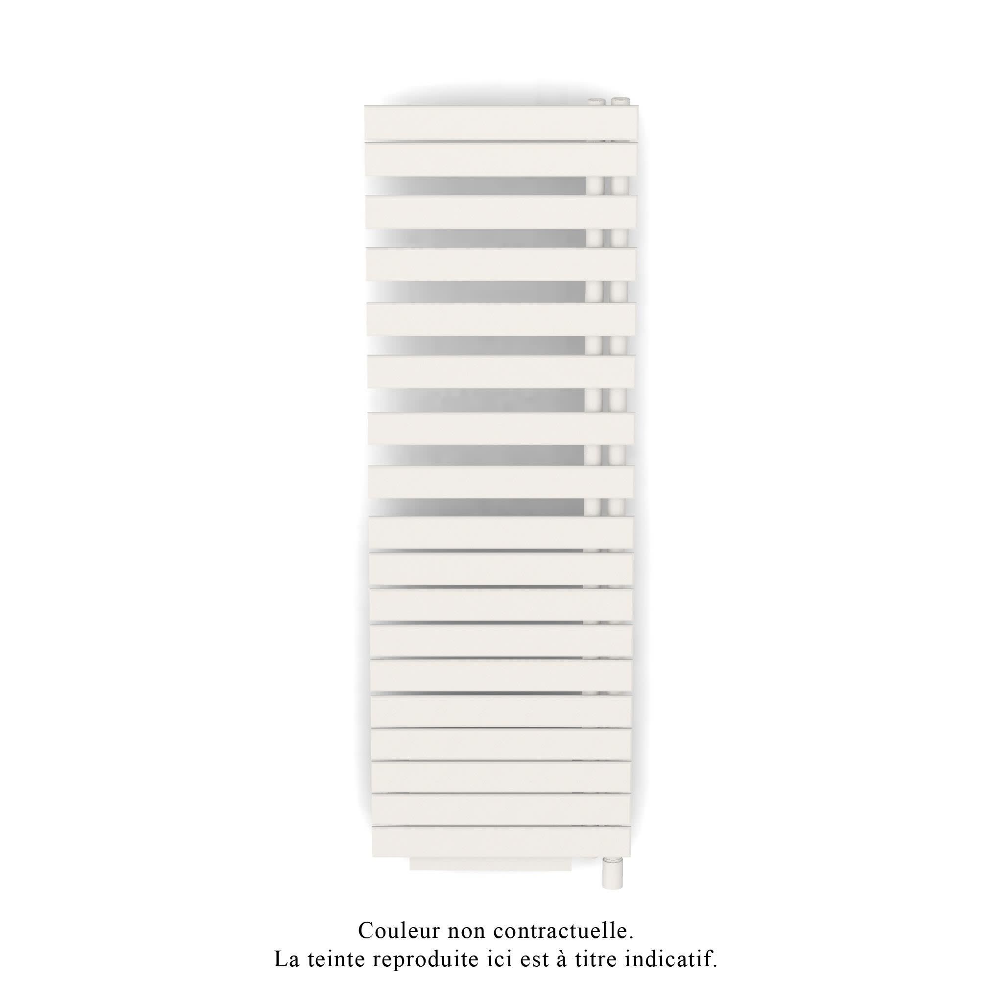 Radiateur sèche-serviettes en acier à tubes plats. Son design asymétrique (à gauche ou à droite) est à la fois original et pratique pour poser les serviettes. Se décline en blanc, dans les 46 couleurs du nuancier Acova. Disponible en version électrique ou chauffage central.