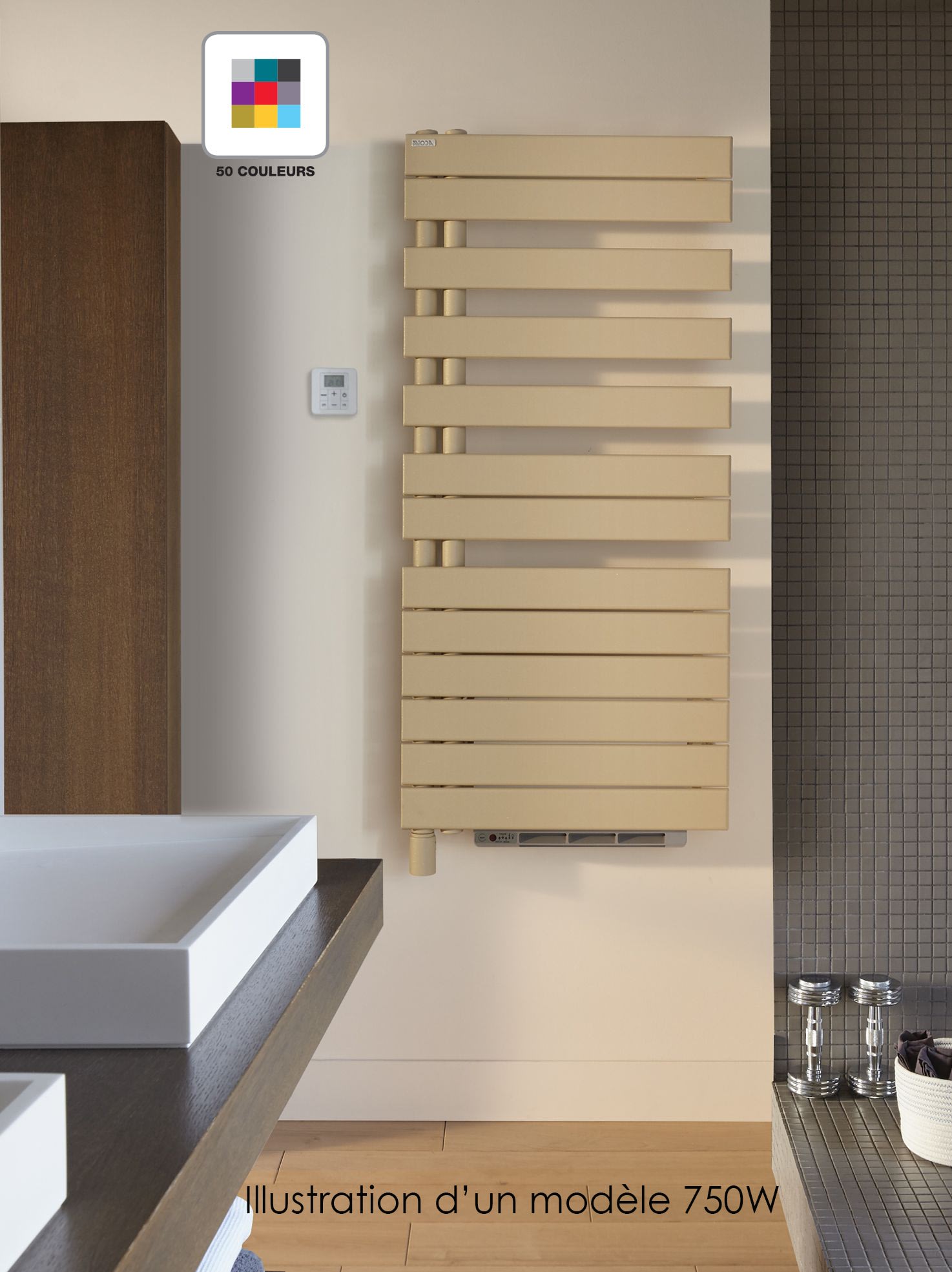 Radiateur sèche-serviettes en acier à tubes plats. Son design asymétrique (à gauche ou à droite) est à la fois original et pratique pour poser les serviettes. Se décline en blanc, dans les 46 couleurs du nuancier Acova. Disponible en version électrique ou chauffage central.