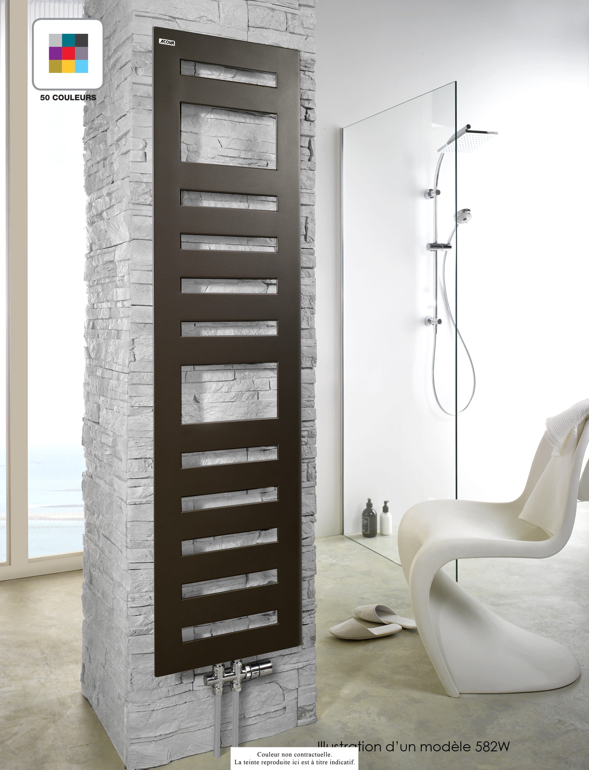 Un design épuré et soigné avec profil biseautéConfort : chaleur homogène pour la salle de bains et les serviettes.Longévité : Acier de haute qualité avec traitement anti-corrosion et peinture longue duréeRobinetterie design inclusePersonnalisation : Disponible (en option) dans les 46 couleurs du nuancier Acova