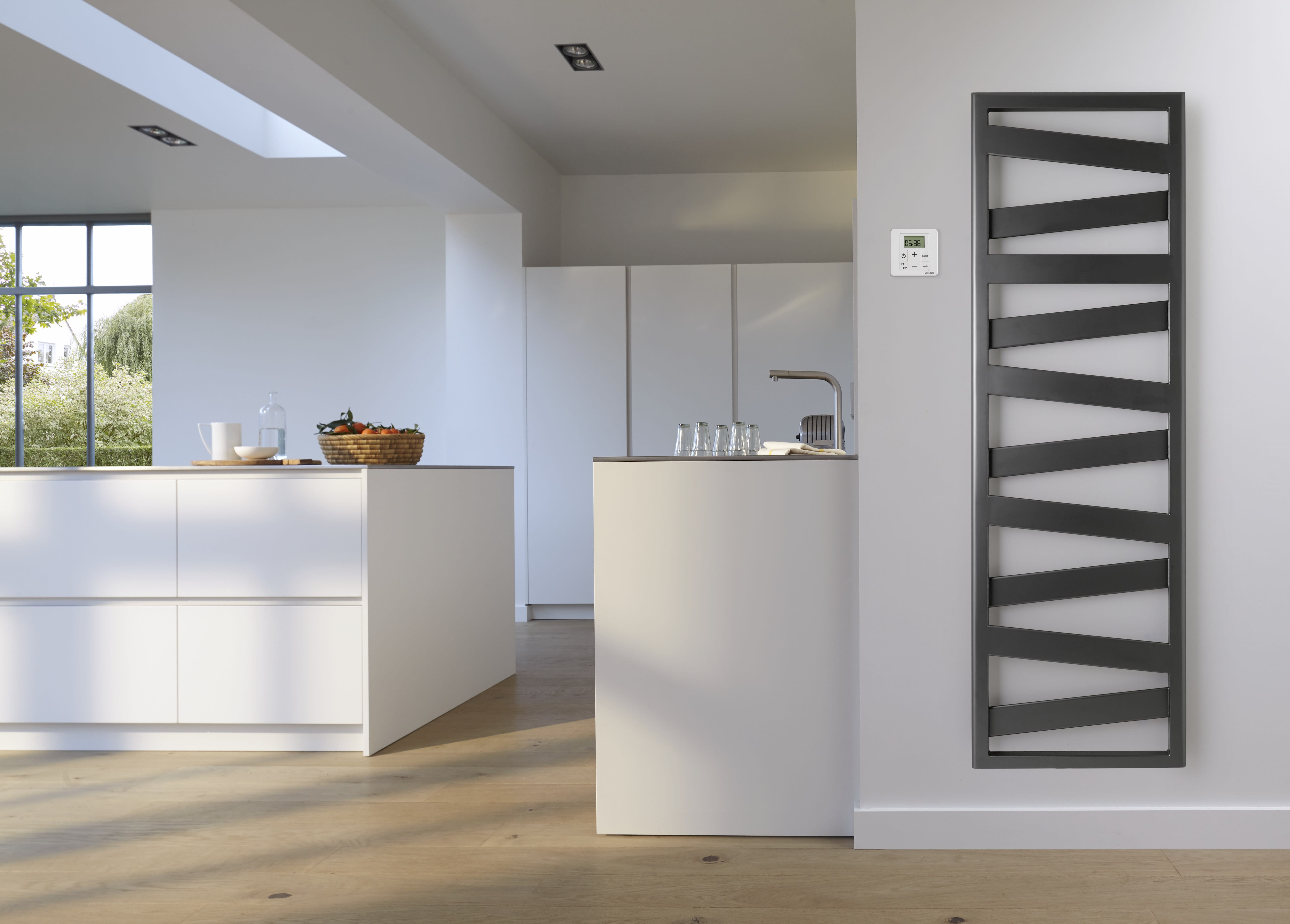 Un design graphique audacieux, conçu par le studio italien King & MirandaConfort : chaleur homogène pour la salle de bains et les serviettes.Finition chromée