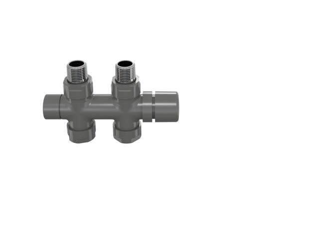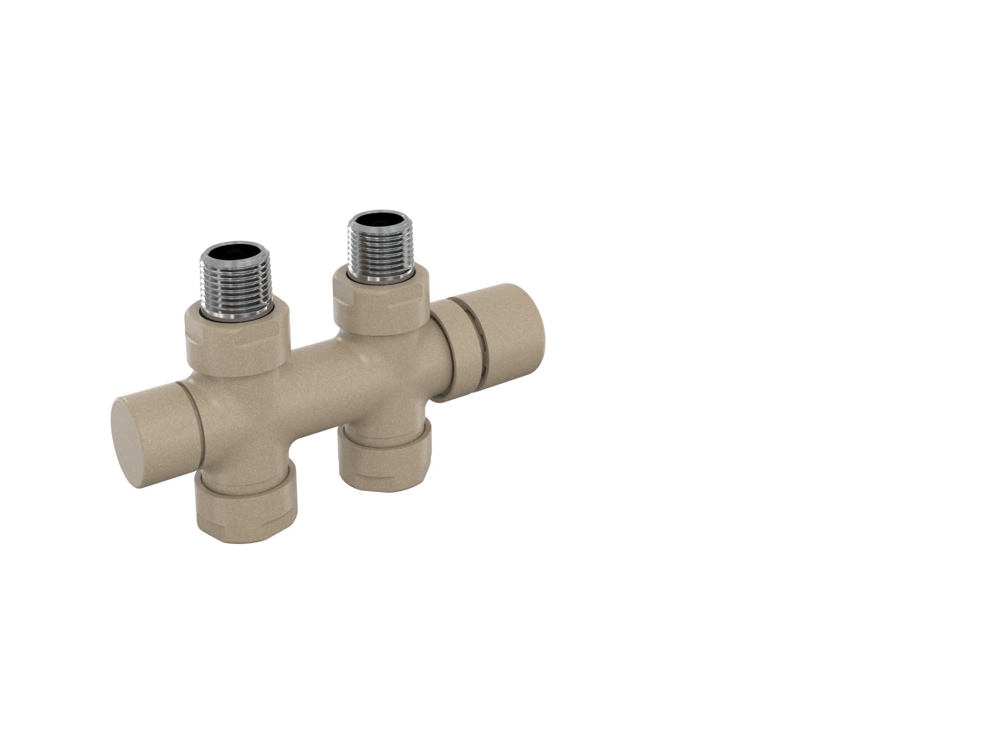 Robinetterie thermostatisable en H droit réversible 1/2'', avec tête manuelle, raccords Cuivre 14x1, PER 12x1, multicouche 16x2, 2 écrous Eurocône 3/4" 16,8mm - Kit O couleur