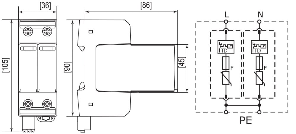 Compact et simple d'installation, pas de déconnecteur associé à ajouter.La protection est efficace pour les équipements sensibles face aux surtensions habituelles avec le Ures@5kA = 1,5kV