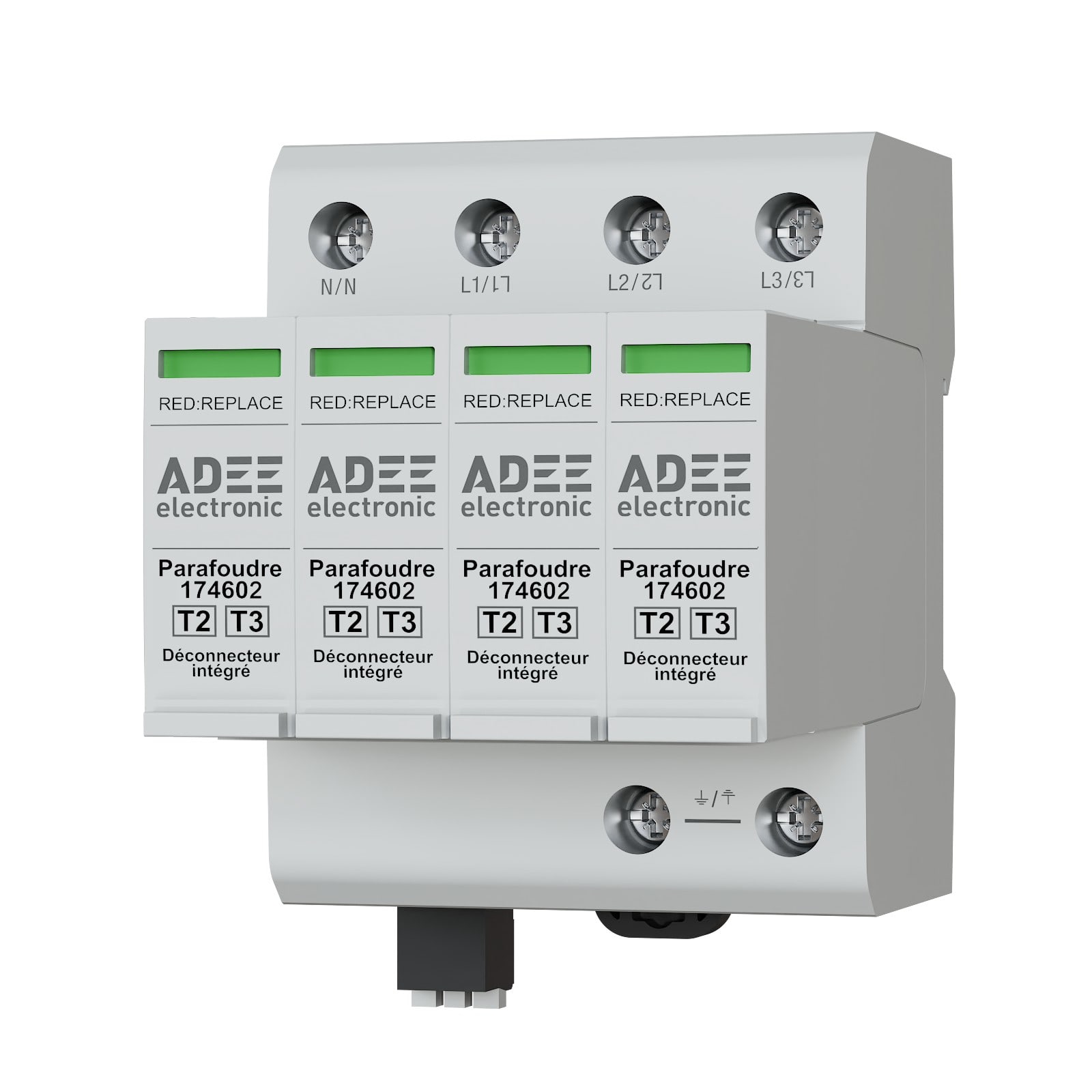 Adee - Parafoudre T2+3 débrochable 4P avec fusible intégré, Uc 440V Imax 30kA TS - 174173