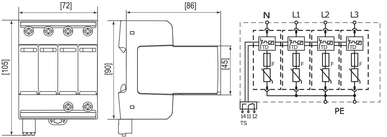 Compact et simple d'installation, pas de déconnecteur associé à ajouter.La protection est efficace pour les équipements sensibles face aux surtensions habituelles avec le Ures@5kA = 1,5kV