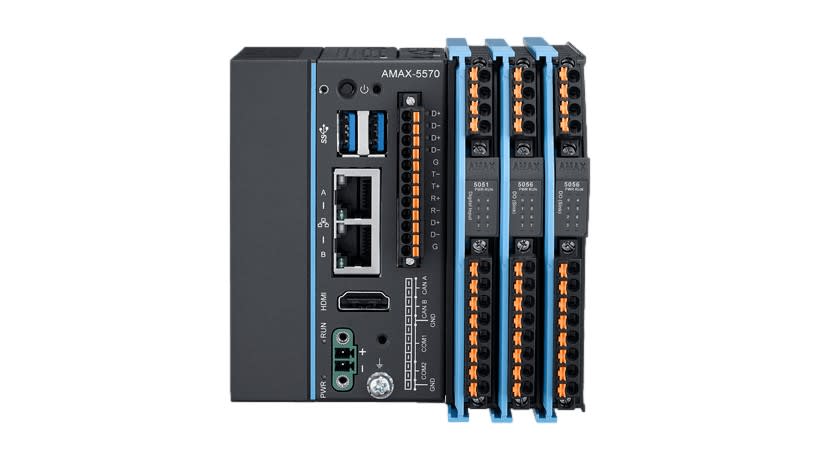 Optimized BIOS & Embedded OS for 1ms real-time control (Windows & Linux)Achieves 32-axis motion control with 500 μs EtherCAT cycle time under LinuxOPC UA and Modbus TCP/RTU as IT connectivity enabled by CODESYSEtherCAT, PROFINET, Ethernet I/P, and CANopen are OT connectivity feature enabled by CODESYSIntel Atom® Elkhart Lake quad-core x6414RE processorSystem I/O with 2 x GbE, 2 x USB, 2 x Isolated CAN 2.0, 2 x Isolated COM, 1 x HDMI1 x M.2 B-Key (USB3.0 / SATA) expansionAMAX-5000 EtherCAT Slice I/O expansion