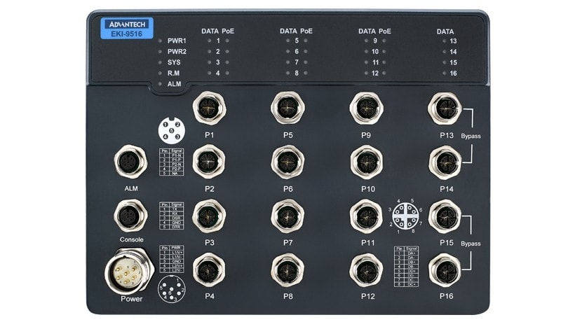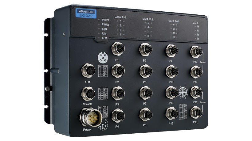Advantech - Switch 16GE PoE (2 bypass), LAN Manageable, EN50155, 24-110VDC - EKI-9516G-4GMPW-AE