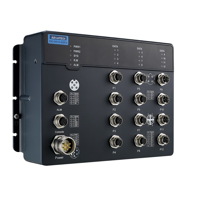 Advantech - Switch 8FE + 4GE, LAN Manageable L3, EN50155,24-110VDC - EKI-9512E-4GRX-A