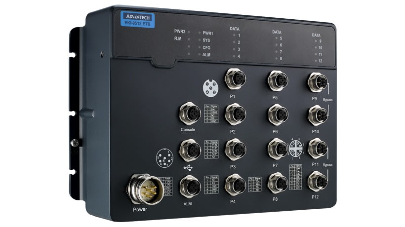 Advantech - Switch 8GE + 4GE, LAN Manageable, EN50155,24-110VDC - EKI-9512G-4GETB-A